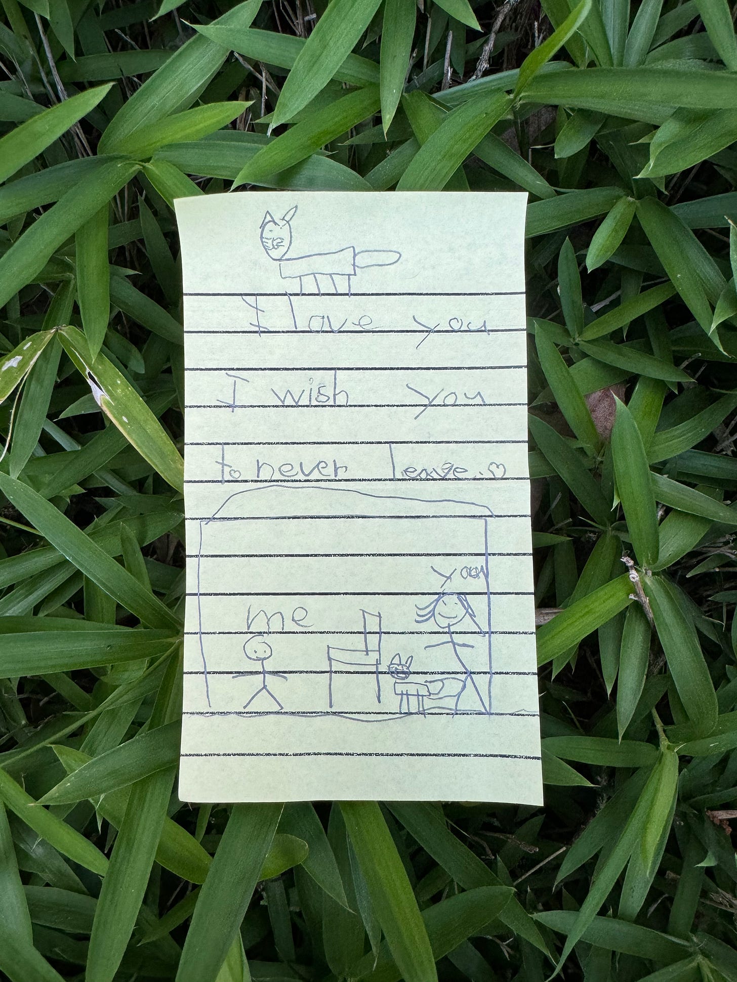 The parting note that my nephew gave me before I left. I held it together in the last 24-hours until I saw this, and then I unraveled with them. The cat joined us for many snuggles, and my nephew would be right by my side, pretty much all the time, including when I would PT exercises for my knee twice a day at a chair, hence the chair in the picture…!