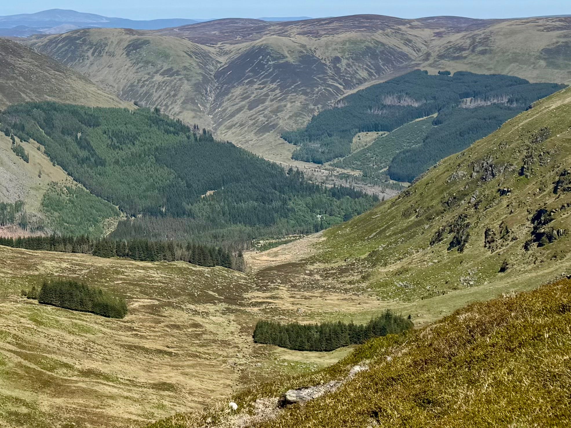 Hiking down from Driesh, Corrie Fee Nature Preserve in the Cairngorms National Park, May 2025.
