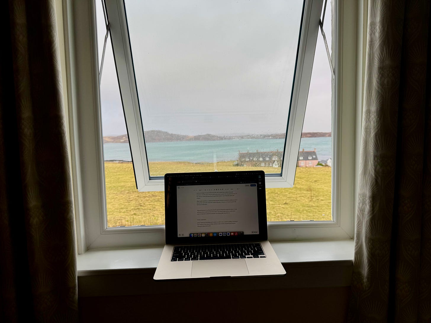 And just because it’s so beautiful, here’s a picture from the windowsill where I stood and typed these words on the Isle of Iona today. I was about to go out for a walk before some writing but it started to sprinkle, so writing today came first :)