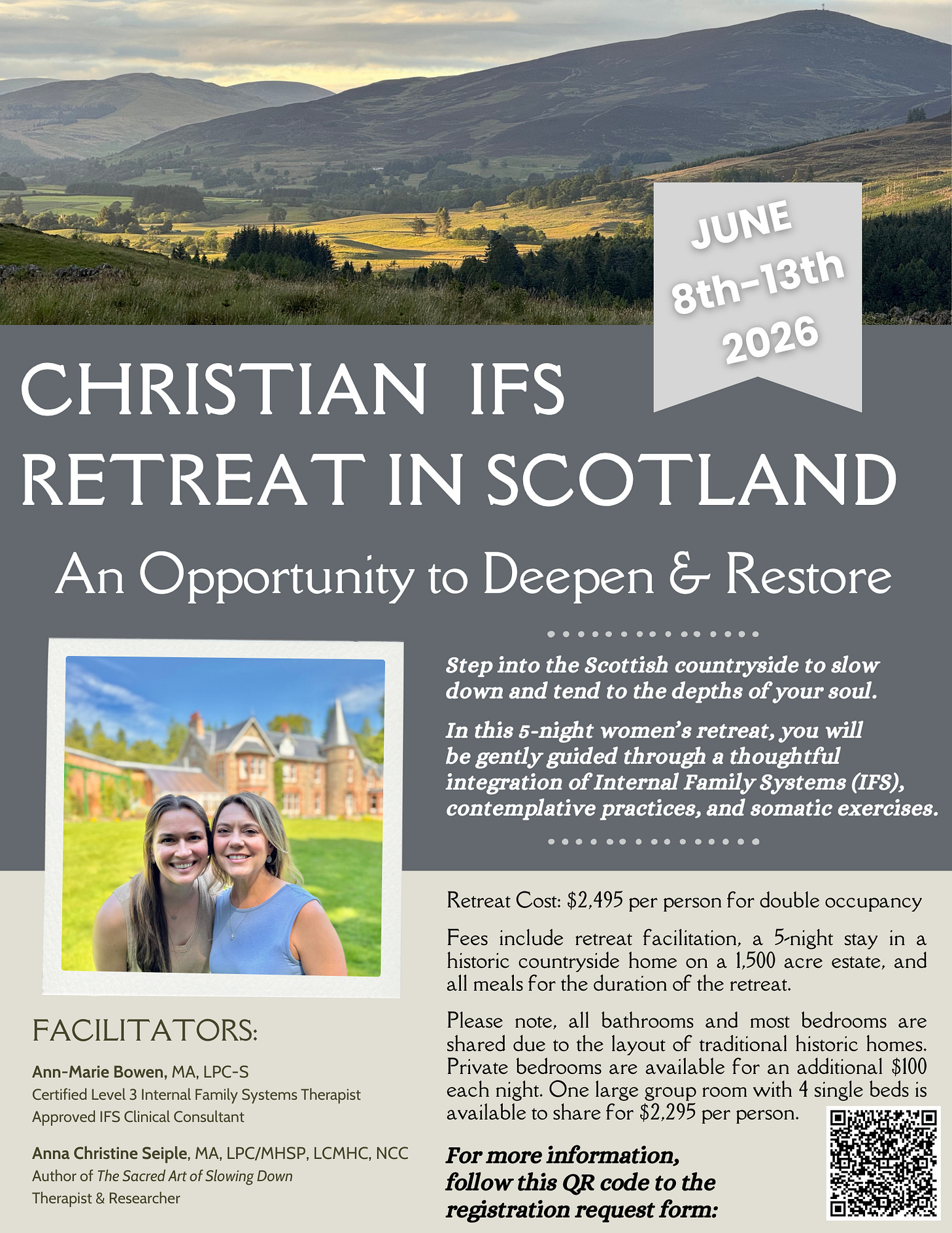 I am thrilled to announce that I am joining with Ann-Marie Bowen to host another retreat in Scotland. For more information, follow the QR code on the graphic below: